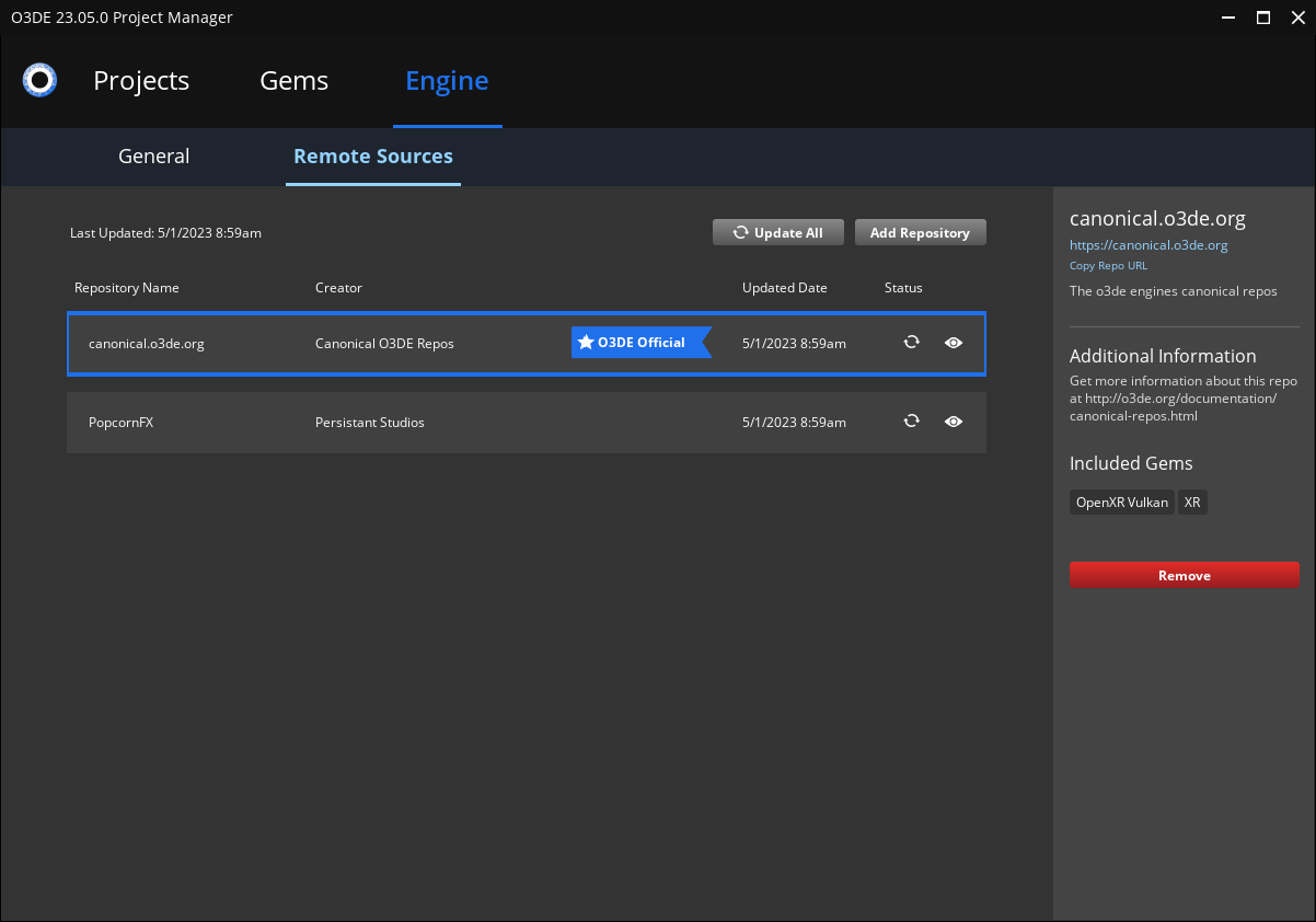 Using the Project Manager, users can install multiple versions of O3DE on the same drive, with projects aware of which O3DE version they were created in and last used with.